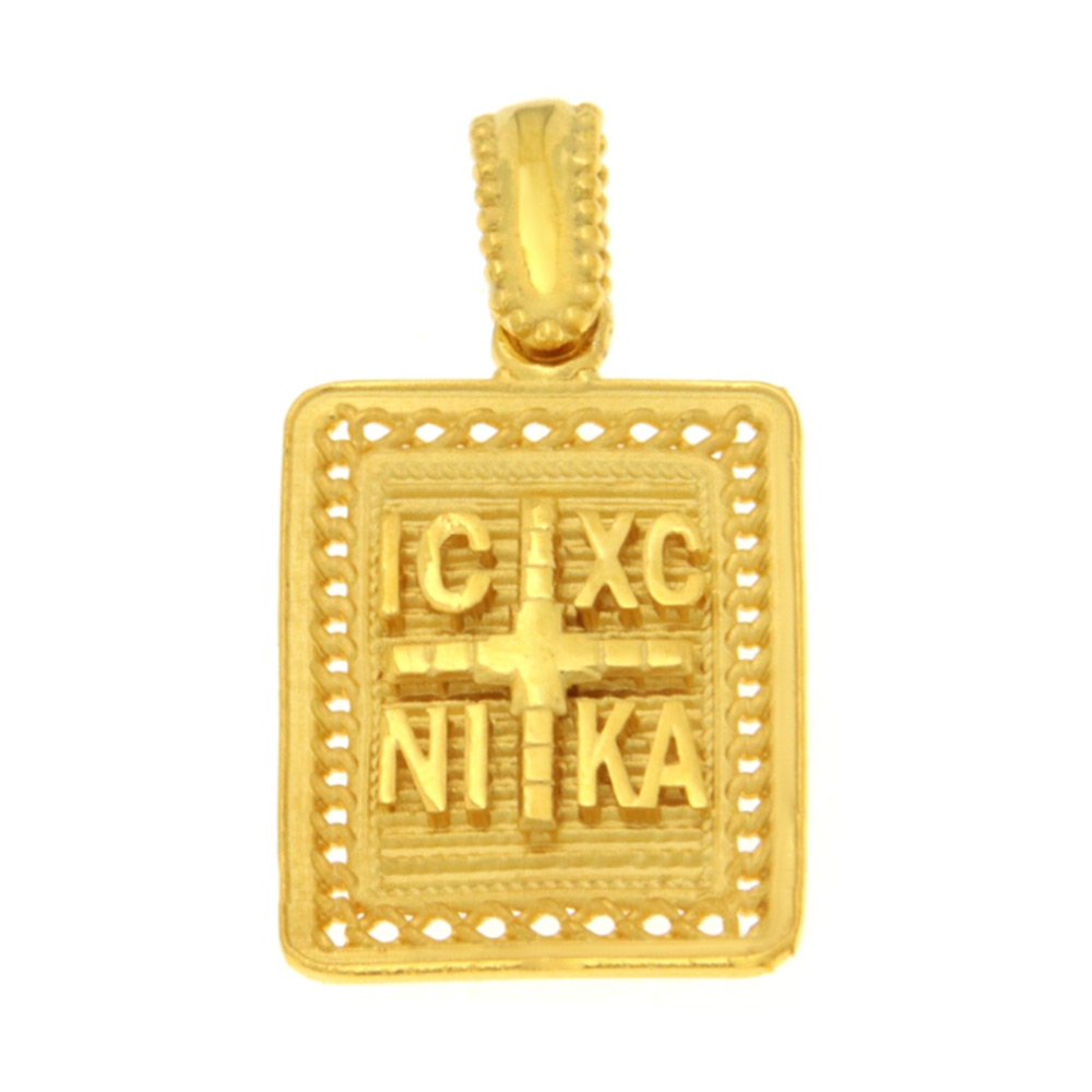 Κωνσταντινάτο διπλής όψης που από τη μία μεριά έχουμε τον σταυρό και από την άλλη τον Άγιο Κωνσταντίνο και την Αγία Ελένη. Το κωνσταντινάτο είναι φτιαγμένο από χρυσό στα Κ9 και βάρος 1,3 γρ.