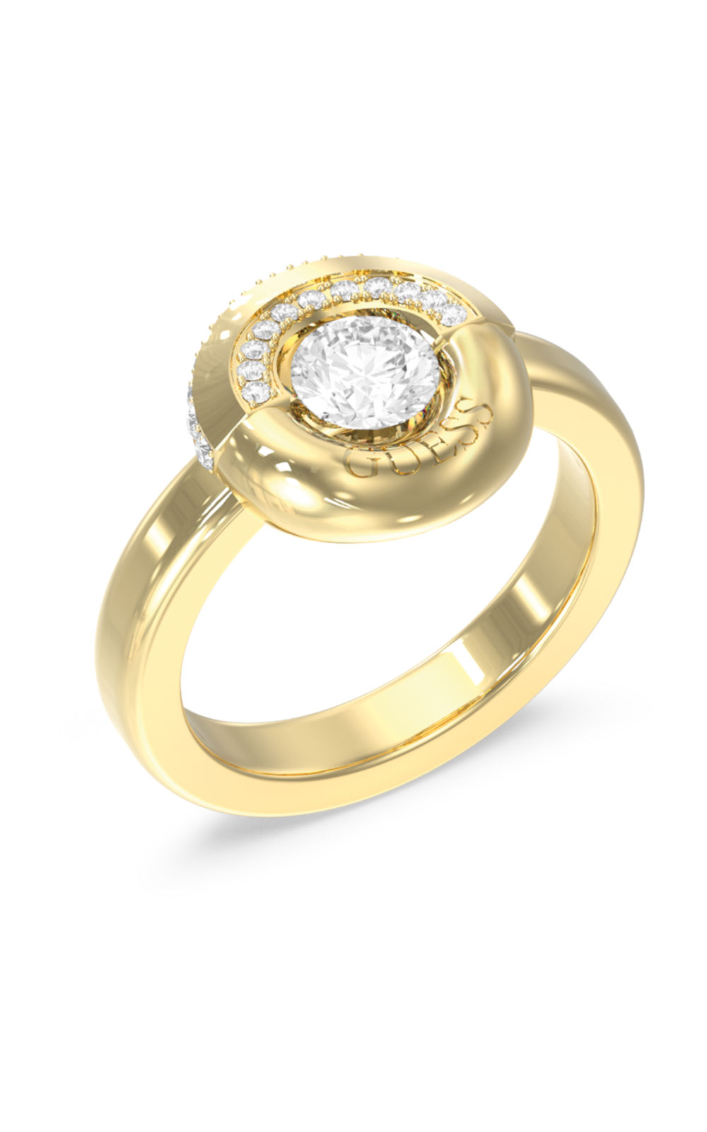 Γυναικείο δαχτυλίδι GUESS STEEL MAJORELLE JUBR05379JWYG-No.54 χρυσού χρώματος με πέτρες και λογότυπο.