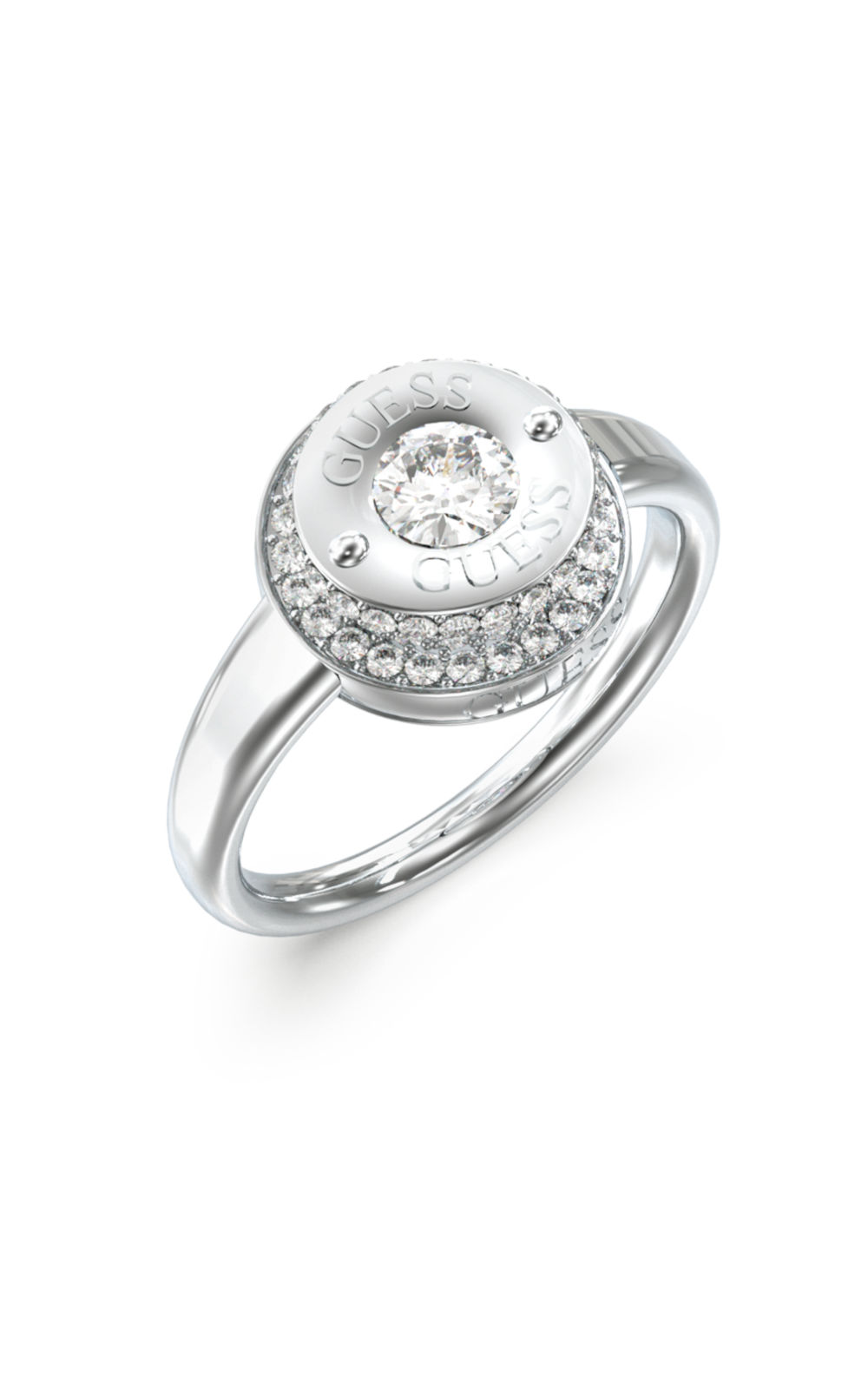 Γυναικείο δαχτυλίδι GUESS STEEL TILL MORNING JUBR05556JWRH-No.56 ασημένιου χρώματος με πέτρες.