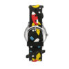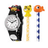 Παιδικό ρολόι διαμέτρου 28mm με μηχανισμό QUARTZ ακριβείας. Έχει λευκό καντράν με μαύρους δείκτες και λεπτομέρειες. Η κάσα του είναι μεταλλική με κρύσταλλο από ορυκτό κρύσταλλο ειδικής σκλήρυνσης. Έχει μαύρο καουτσούκ λουράκι με πλανήτες και κούμπωμα τοκάς. Δεν είναι αδιάβροχο.