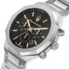 Ανδρικό ρολόι διαμέτρου 45mm με μηχανισμό QUARTZ χρονογράφου ακριβείας. Έχει μαύρο καντράν με επίχρυσους δείκτες, λευκές λεπτομέρειες και ένδειξη ημερομηνίας. Η κάσα του είναι ασημί από ανοξείδωτο ατσάλι και κρύσταλλο από ορυκτό κρύσταλλο ειδικής σκλήρυνσης. Έχει ασημί μπρασελέ από ανοξείδωτο ατσάλι και κούμπωμα ασφαλείας. Είναι αδιάβροχο (10 ΑΤΜ).