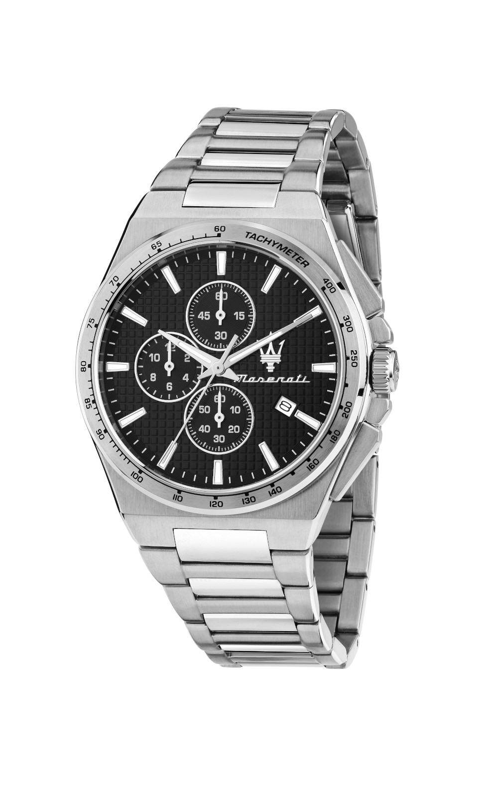 Ανδρικό ρολόι διαμέτρου 41mm με μηχανισμό Quartz Χρονογράφος Ακριβείας. Έχει μαύρο καντράν με ασημένιους δείκτες. Η κάσα του είναι ασημένια από ανοξείδωτο ατσάλι και κρύσταλλο από ορυκτό κρύσταλλο. Έχει μπρασελέ από ανοξείδωτο ατσάλι και κούμπωμα ασφαλείας. Είναι αδιάβροχο (5 ΑΤΜ).