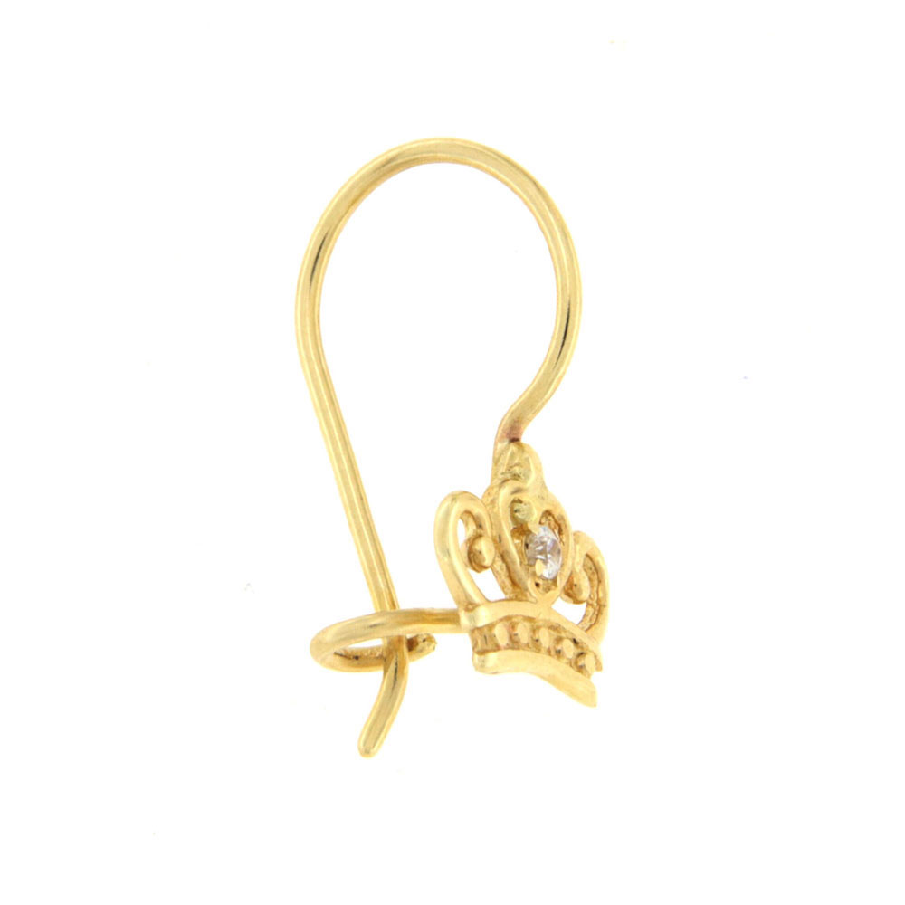 Τα συγκεκριμένα κρεμαστά σκουλαρίκια αποτελούν την ιδανική επιλογή για ένα εντυπωσιακό outfit καθώς είναι φτιαγμένα από χρυσό με μία κορώνα με λευκό ζιργκόν. Είναι στα 9 καράτια και συνολικό βάρος 0,6 γρ. Αν θέλετε να ξεχωρίζετε είναι η απόλυτη επιλογή! Φυσικά μπορείτε να το προσφέρεται και ως δώρο σε ένα αγαπημένο σας πρόσωπο.