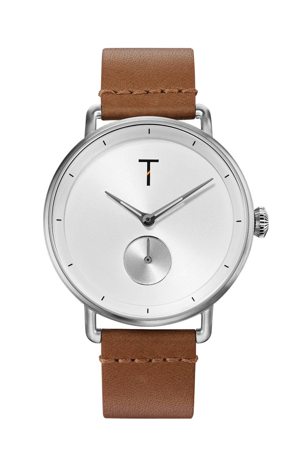 Ανδρικό ρολόι διαμέτρου 40mm, με μηχανισμό Quartz ακριβείας. Έχει ασημένιο καντράν με ασημένιους δείκτες και μαύρες λεπτομέρειες. Η κάσα του είναι από ανοξείδωτο ατσάλι με κρύσταλλο ειδικής σκλήρυνσης με επικάλυψη από ζαφείρι. Έχει καφέ δερμάτινο λουράκι με κούμπωμα τοκάς. Είναι αδιάβροχο (5 ATM). Το λουράκι είναι εναλλάξιμο.